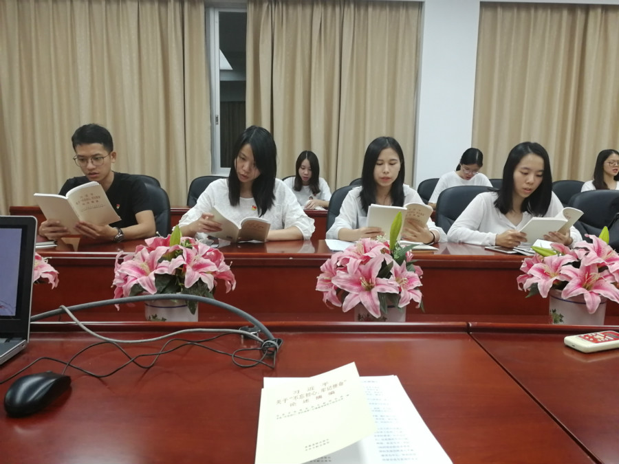 会议开始,全体起立奏唱国歌。接着,全体朗读第四章“坚定理想信念”,并认真阅读书本。在分享交流会上,曾霖、陈海思、李丹娜等十名同志从铭记历史、坚定信念、不忘初心等多方面对书本进行解读,认真阅读习近平关于“不忘初心,牢记使命”的论述摘编,并结合实际分享阅读感悟与心得。