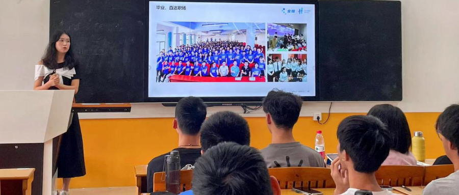 何锦漫从企业的角度向学生们介绍金蝶集团、数字化顾问岗位、数字化岗顾问的培养模式,她表示数字化顾问岗位有大量的需求,在中小企业进行数字转型的今天,希望学生们努力学习,把握时代的机遇。