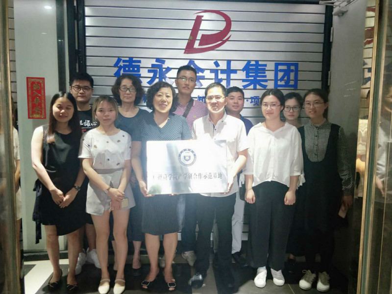 4月11日下午,Beat365官方网站院长成慕杰、副院长孙晓梅、审计学教研室主任夏唐兵、专任教师林焕洽等一行前往深圳德永会计集团参加“广州商学院产学研合作示范基地”挂牌仪式。