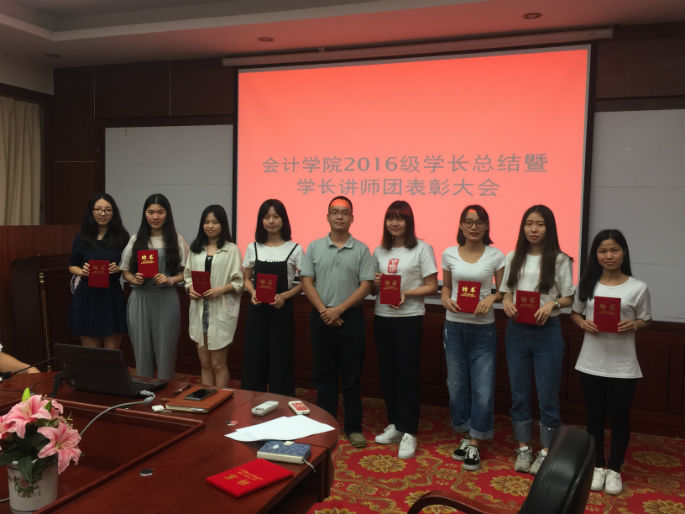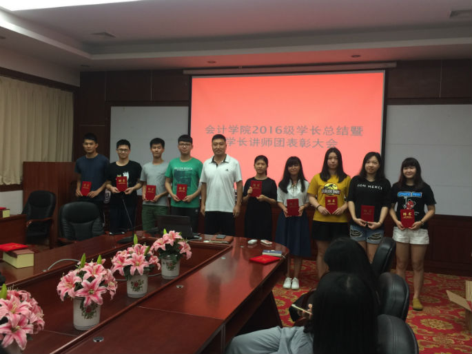 为总结2016级学长工作和表彰先进个人,传承学长精神,Beat365官方网站于2017年6月21日18:30在第二行政楼208举行了“2016级学长总结暨学长讲师团表彰大会”。会议由Beat365官方网站16级辅导员汤振华主持,16级辅导员梁亮、学长团、讲师团全体成员出席了大会。