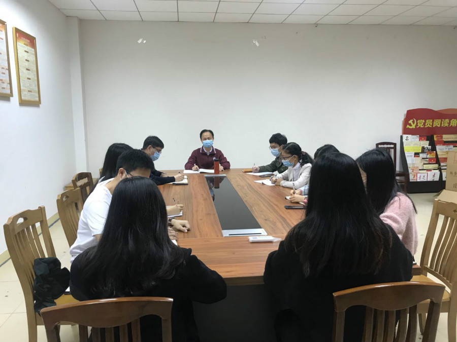 会议伊始,由范立坚同志就学院当前2020届学生的实习及工作情况向大会作了2020届学生实习及就业的工作报告,并根据有关数据分析了因疫情给2020届学生再就业上遇到的困难及辅导员工作遇到的困境,提出相应的需求等。