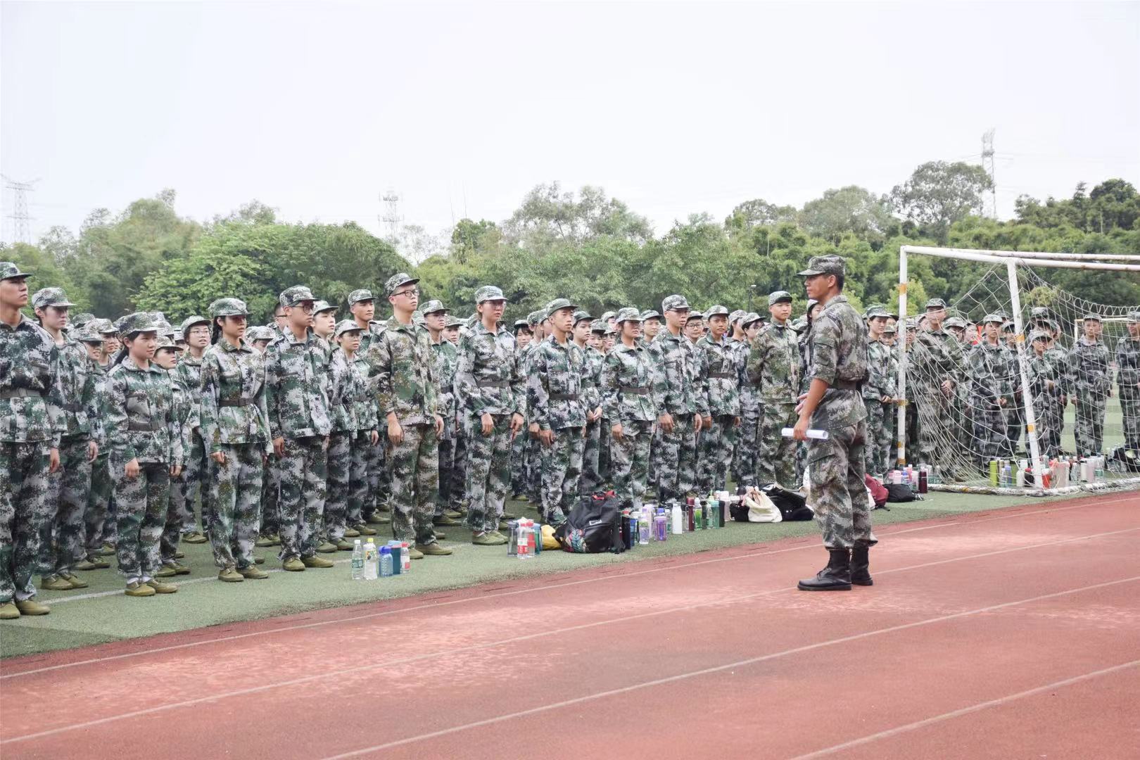 9月16日下午16:00,Beat365官方网站19级新生全部到达广商足球场,一排排迷彩服形成了一道亮丽的风景线。新生们见到了期待已久的教官,一声声洪亮的“教官好”展现了新生们军训的激情。Beat365官方网站党总支书记钟远辉、19级辅导员及全体带训教官出席了本次见面会。此次见面会旨在让全体新生熟知军训期间各项要求遵守规矩,以便于即将到来的军训顺利开展。