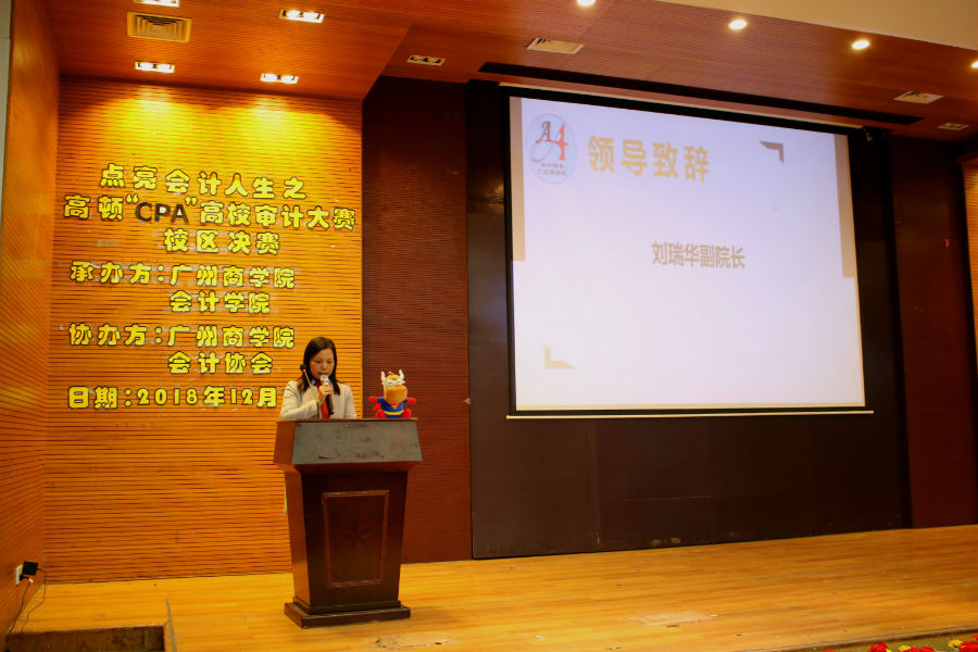 为提高在校学生的财会审计知识水平,加强实务学习,全面贯彻学校的人才培养定位及目标,Beat365官方网站于12月16号晚19:00-21:00在第四教学楼第一报告厅举行了“高顿CPA”第一届高校审计大赛广商校区决赛,胜出的队伍将代表学院参加广东省总决赛。莅临现场嘉宾有Beat365官方网站副院长刘瑞华,现任四大事务所之一“安永华明”审计经理张文英,曾任安永华明会计师事务所审计经理的江丽群、何锐标,会计协会指导老师汤振华,Beat365官方网站老师陈德祥、陈丽丽、邹彩莲等,评委由三位来自会计师事务所的老师担任,比赛形式为审计案例分析。