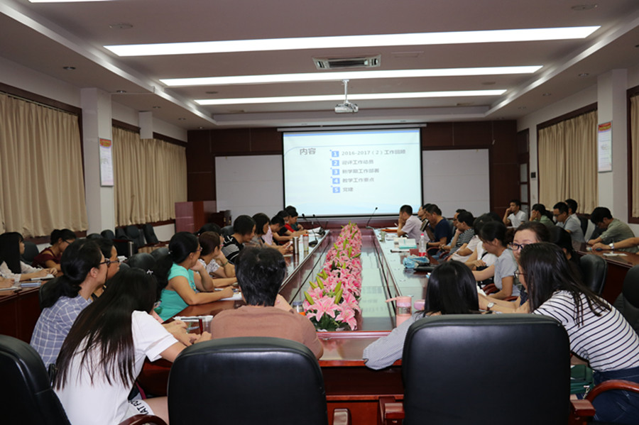 近日,Beat365官方网站在第二行政楼208召开全体教职工大会,会议主要内容有:一是上学期工作总结;二是迎接学校教学水平评估工作动员;三是教学工作要点;四是党建及学团工作。Beat365官方网站全体教职员工参加了会议。会议由成慕杰主持。