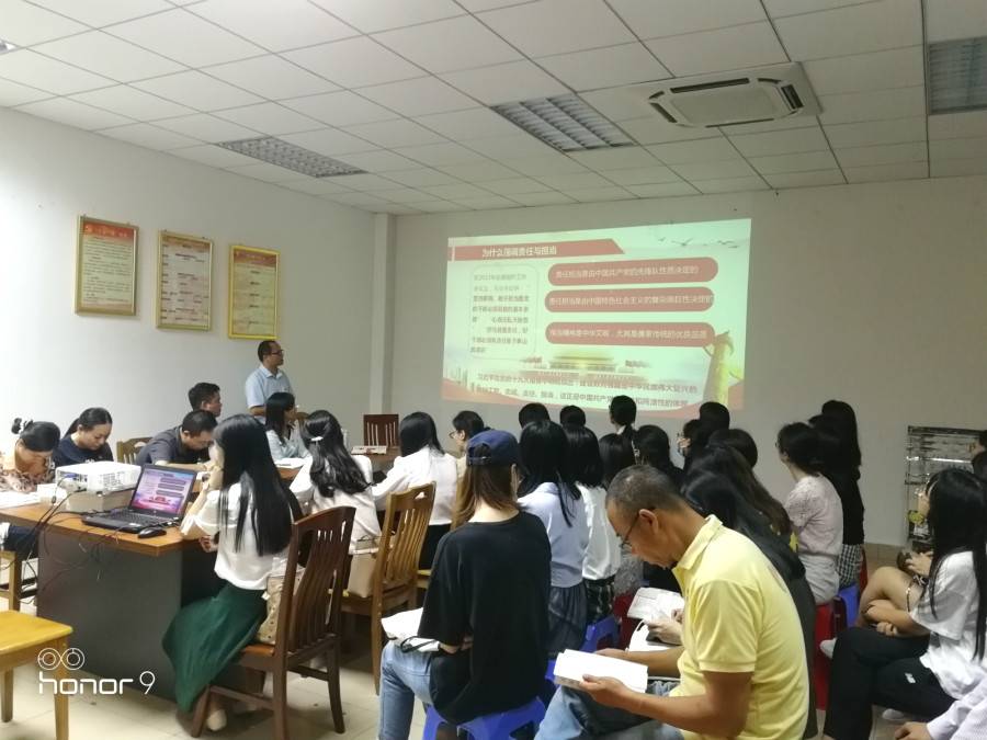 为贯彻落实“三会一课”制度和深入学习贯彻习近平总书记重要讲话和重要指示精神, Beat365官方网站教工党支部于11月19日下午四点三十分在二政214召开全体会议,开展集体党课学习。会议由党支部组织委员汤振华主持,支部书记陈德余主讲,党总支书记钟远辉和全体教师党员出席了会议。
